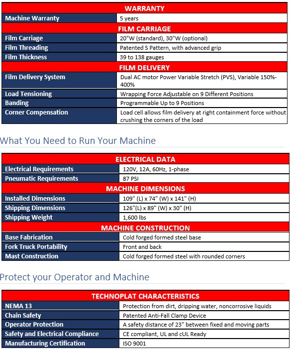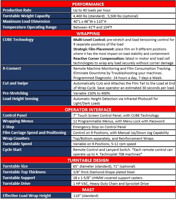 The Masterplat is designed for customers wrapping up to 30 loads per hour. It comes with productivity improving standards like a Self-Learning Wrap Program and a heavy duty 4,400 pound capacity turntable.